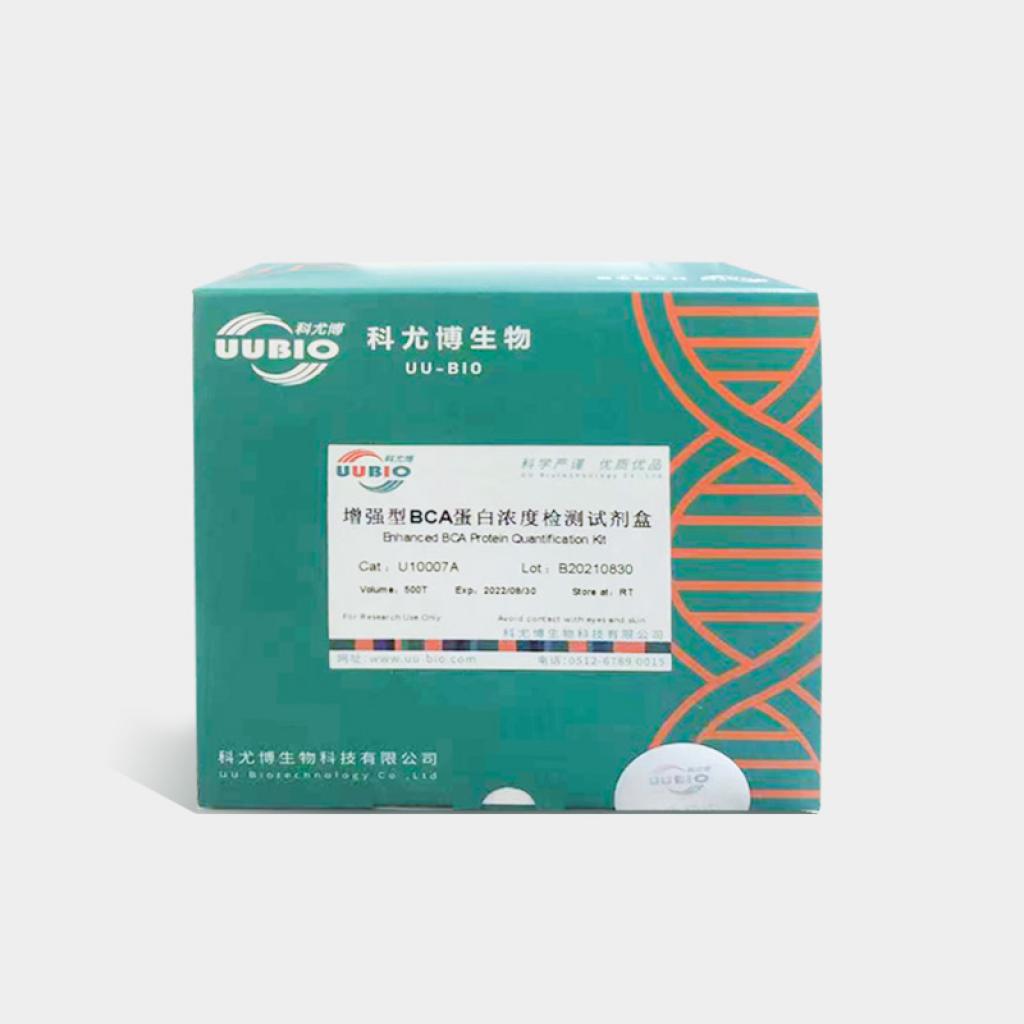该增强型BCA蛋白浓度测定试剂盒可用于试管法检测,也可用于微孔板法检测。试管法需较大量的蛋白样品(100μl)和工作液(2mL),蛋白样品与BCA工作液的比率为1:20(v/v),蛋白质测定范围为20-2000μg/ml,采用加强法可以检测到5μg/ml;微孔板法操作简单方便,仅需少量(10-25μl)的蛋白样品和工作液(200μl),蛋白样品与工作液的比率为1:8(v/v)或者1:20(v/v),蛋白质测定范围为20-2000μg/ml,采用加强法可以检测到5μg/ml。我公司提供两种规格的BCA蛋白浓度检测试剂盒,比色皿法分别可做50次,250次。酶标法分别可做500次,2500次。